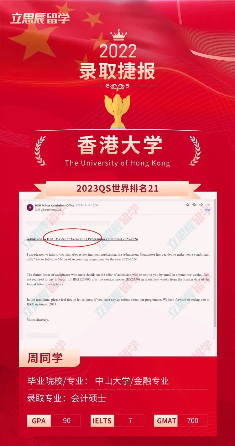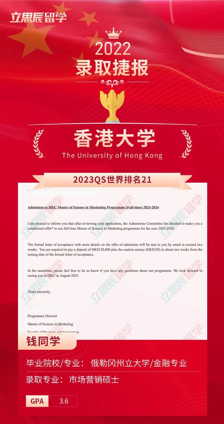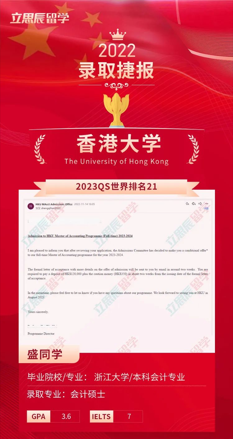 以下是 立思辰留学学子收获的港大OFFER 展示(部分)。