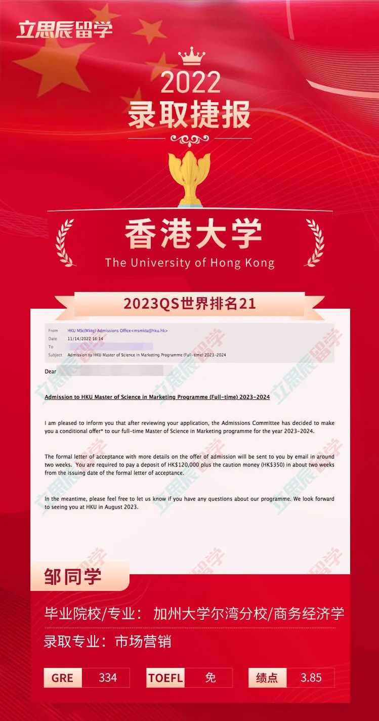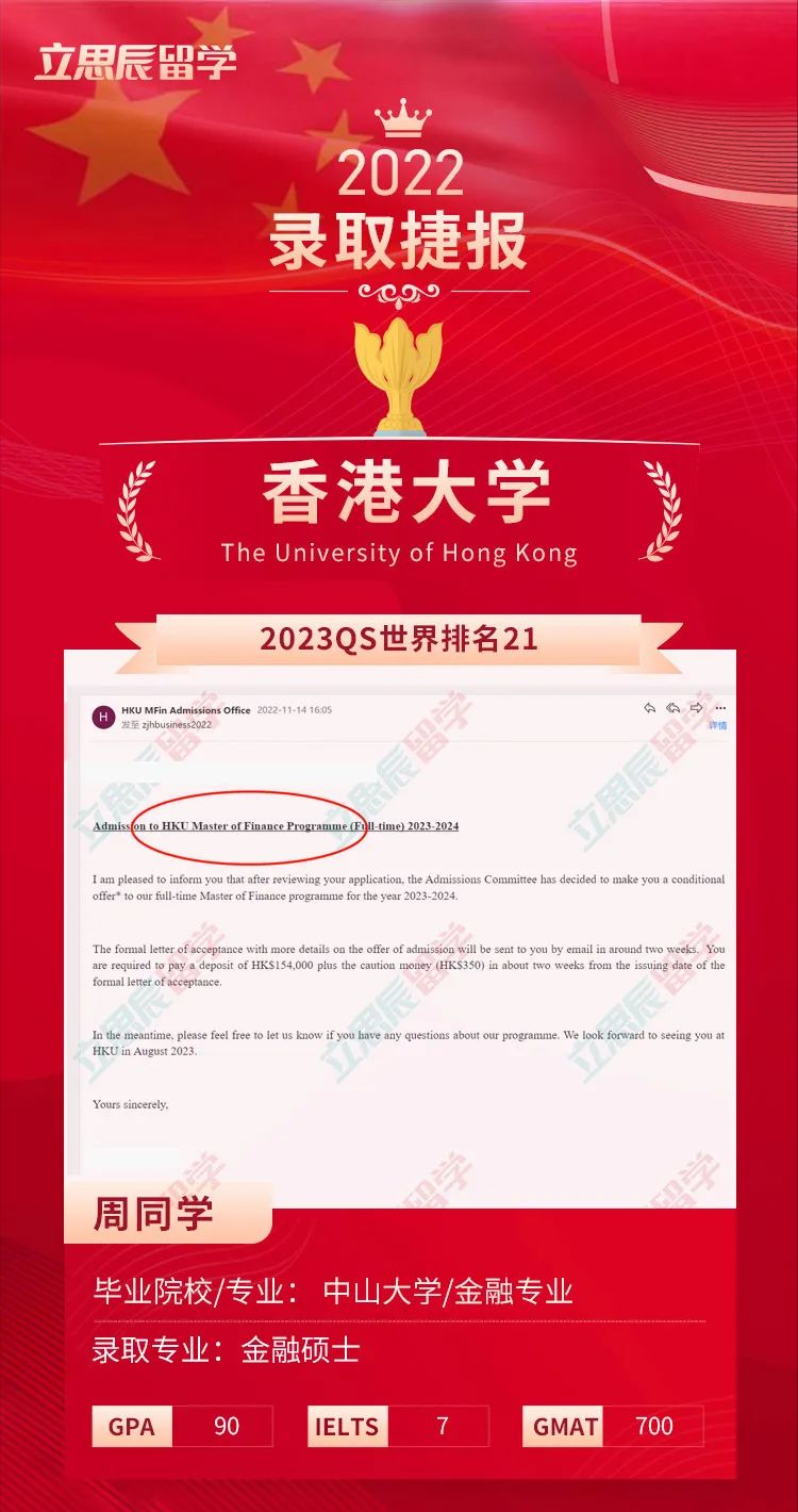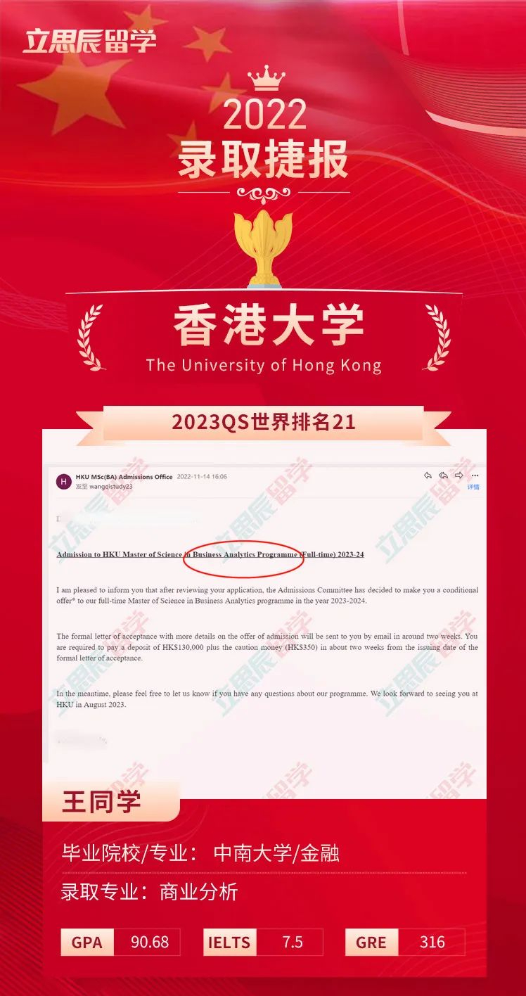 众所周知,港大商学院各项目第一轮申请已经截止,并开始陆续发放录取咯! 立思辰留学学子们正持续不断给我们带来惊喜 。