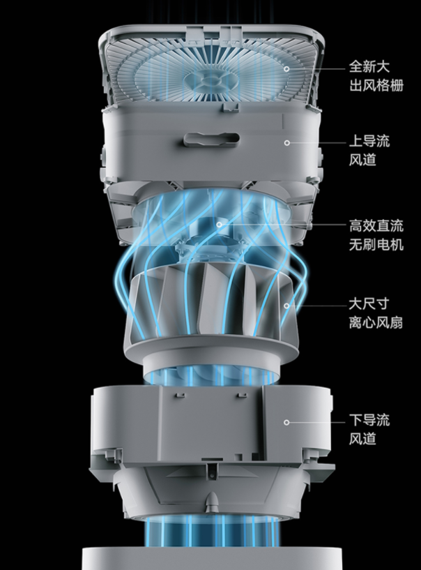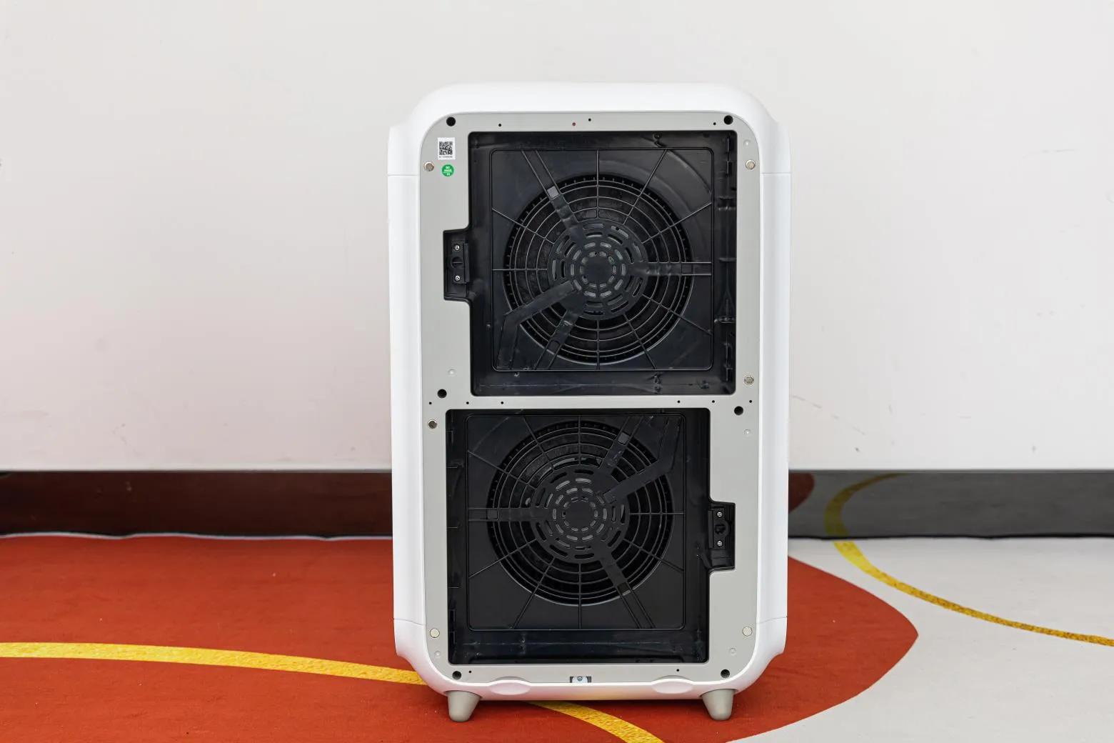 这款空气净化器最大的特点是能实现全屋强效去除甲醛,适用85㎡大面积净化。设计上的亮点是采用阿基米德风道曲线,使气流更加顺畅高效,同时采用双引擎、双侧进风结构,输出强劲风量,再结合上面一款同样的双重除甲醛配方,达到全屋洁净的效果。 不过它的风道设计出风口是向上的,在出风时候容易形成气溶胶。而且,平时不小心容易掉东西进去。