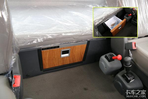 副驾驶座椅后面有220V电源接口,功率为300W,手机、对讲机等小电器可以使用它充电,对于经常在外的卡友来说,这个配置比较实用。