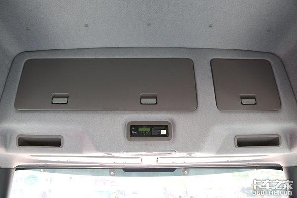 在驾驶室顶部有一大一小的封闭储物格,洗漱物品、个人衣服可以放在里面。