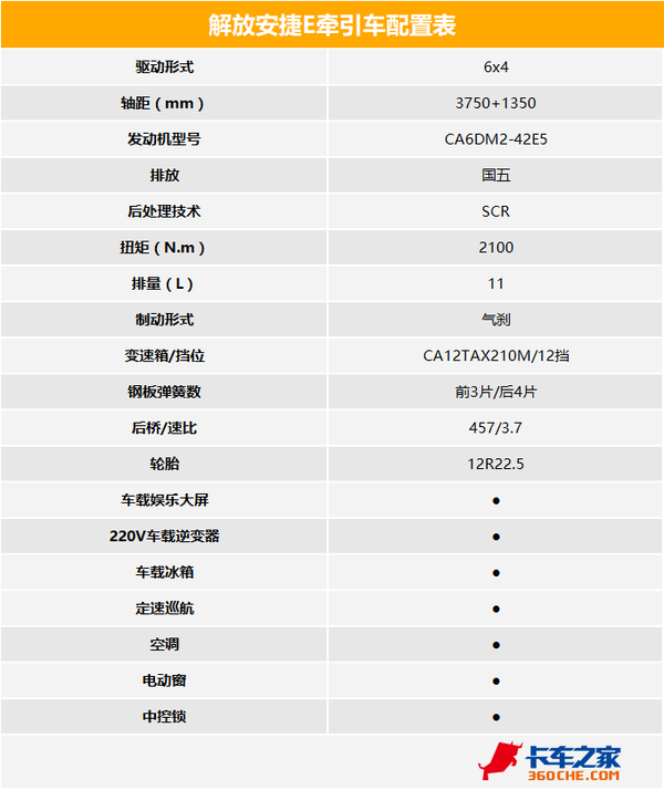 之前很多人对于国产的长头牵引车印象多半是车辆的动力小,配置低。而这辆安捷E的牵引的配置一点也不低。