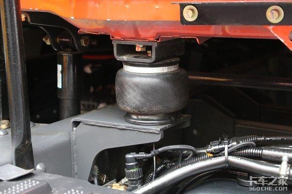 由于长头牵引车的驾驶室在前桥与后桥的中间位置,所以在理论上长头牵引车的驾驶室舒适性比平头好一点。但是这辆车的驾驶室的后侧设计有气囊,进一步提升车辆的舒适性。