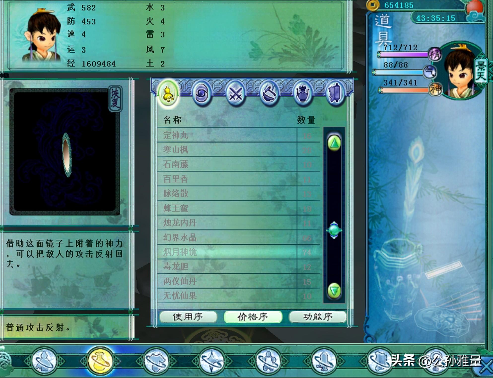 不过相比于无脑的破财套装,还是道具流打法最广为所知。众所周知《仙剑3》游戏里有五样BUG一般的道具,分别是软骨浆、减速砂、烟月神镜、幻界水晶和裂天钉。
