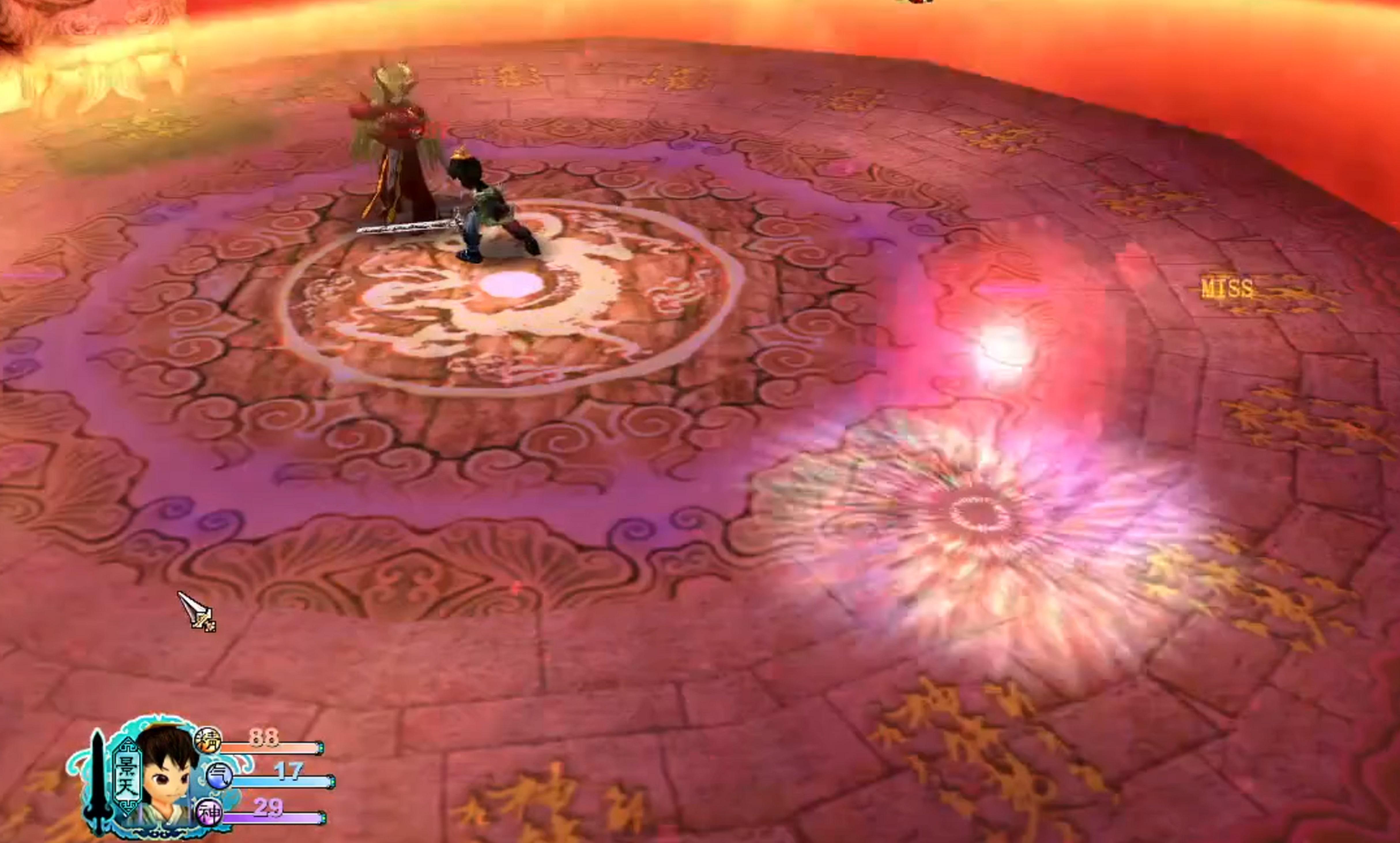 等重楼回到自己的位置上时,景天的攻击恰好赶到,结果正好挨下了这一击。利用这一套打法,重楼的攻击永远都是MISS,而景天总能攻击到对方。