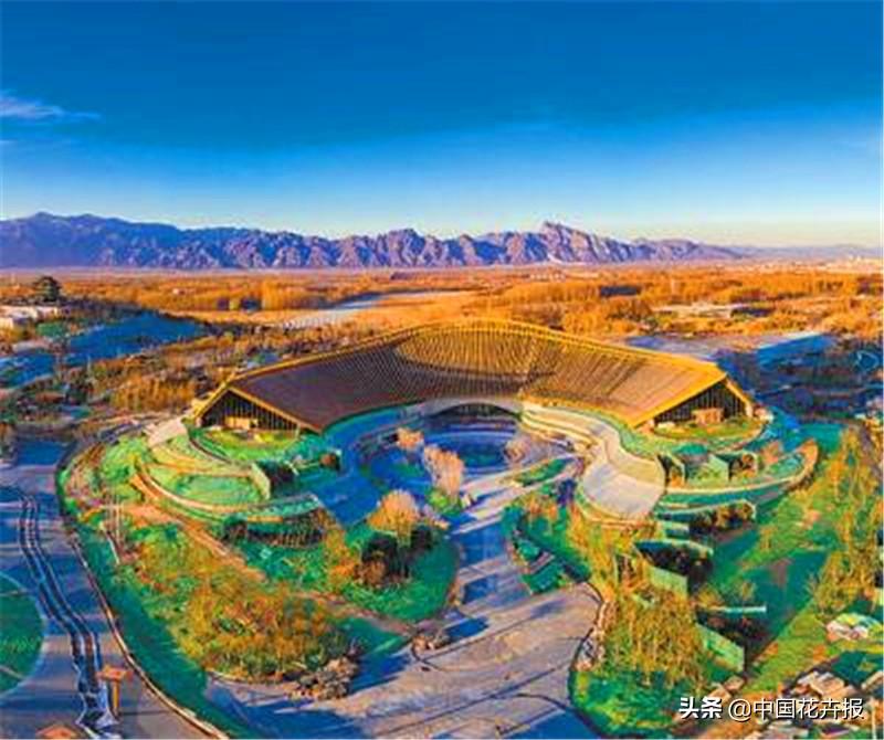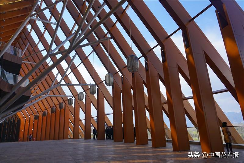 妫水河畔,长城脚下, 2019北京世园会的标志性建筑——中国馆,宁静而端庄地坐落在一片自然田园之中。从空中俯瞰,仿佛一柄如意,在锦绣大地上熠熠生辉。