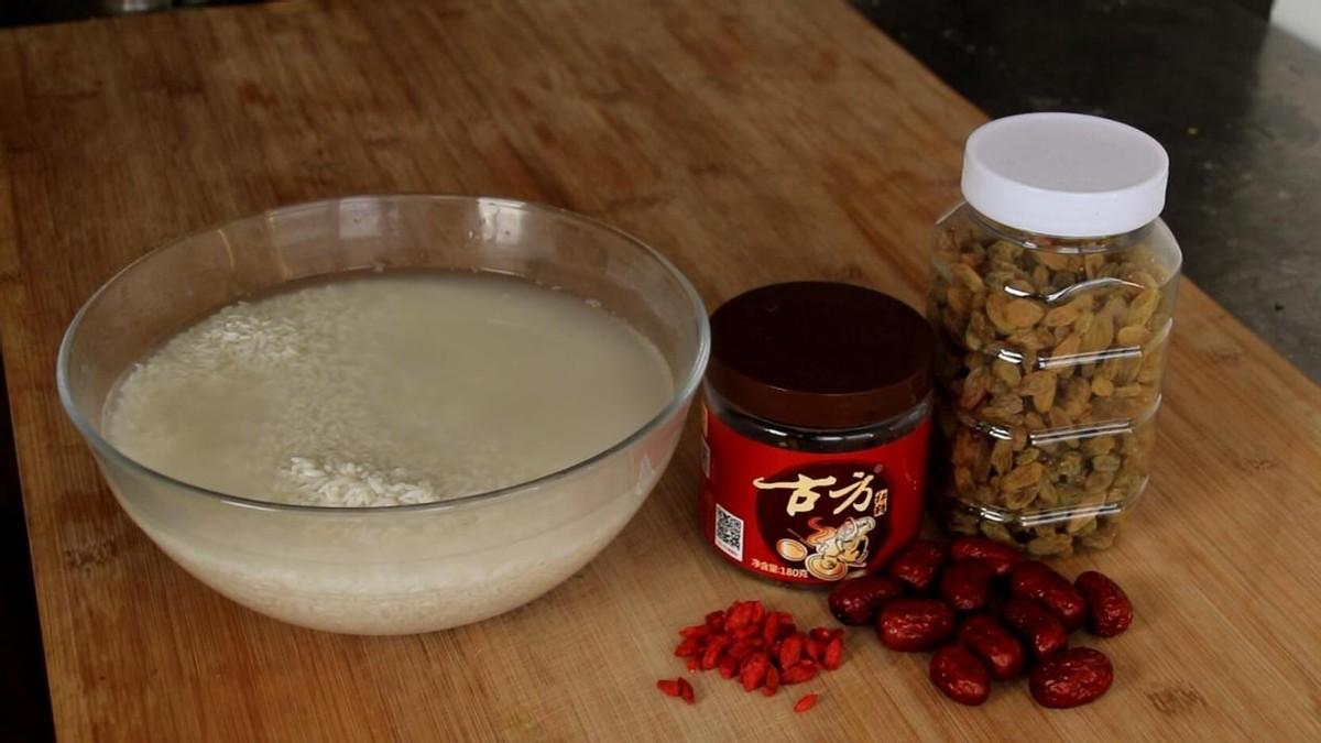 2.下面开始准备配料,枸杞, 大枣 , 葡萄干,红糖。
