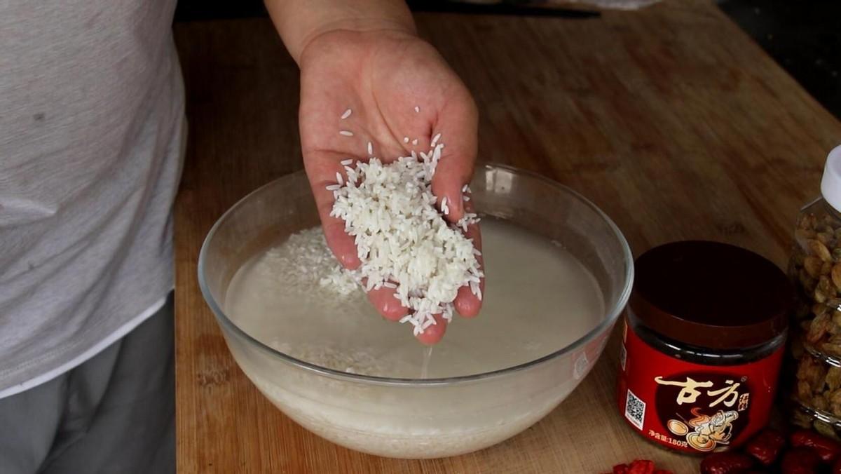 1.准备一斤糯米,先用水给它浸泡6个小时,泡到糯米一掐就碎就可以了。