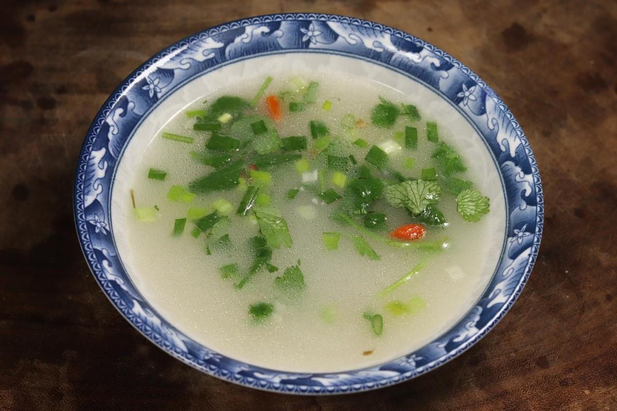 4.10分钟到了,加入一把虾仁,适量的白胡椒粉,一勺食用盐,加入枸杞,继续炖煮5分钟。最后再撒上香葱叶就可以关火了。