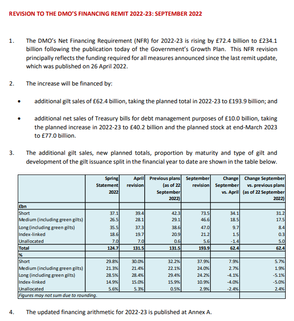 文件显示,英国债务管理局(DMO)预测,在大规模财政刺激措施之后,政府的借款规模将大幅增加,这些资金主要将通过发行政府债券来筹集。减税将使英国2022-23财年的净融资需求大增724亿英镑。