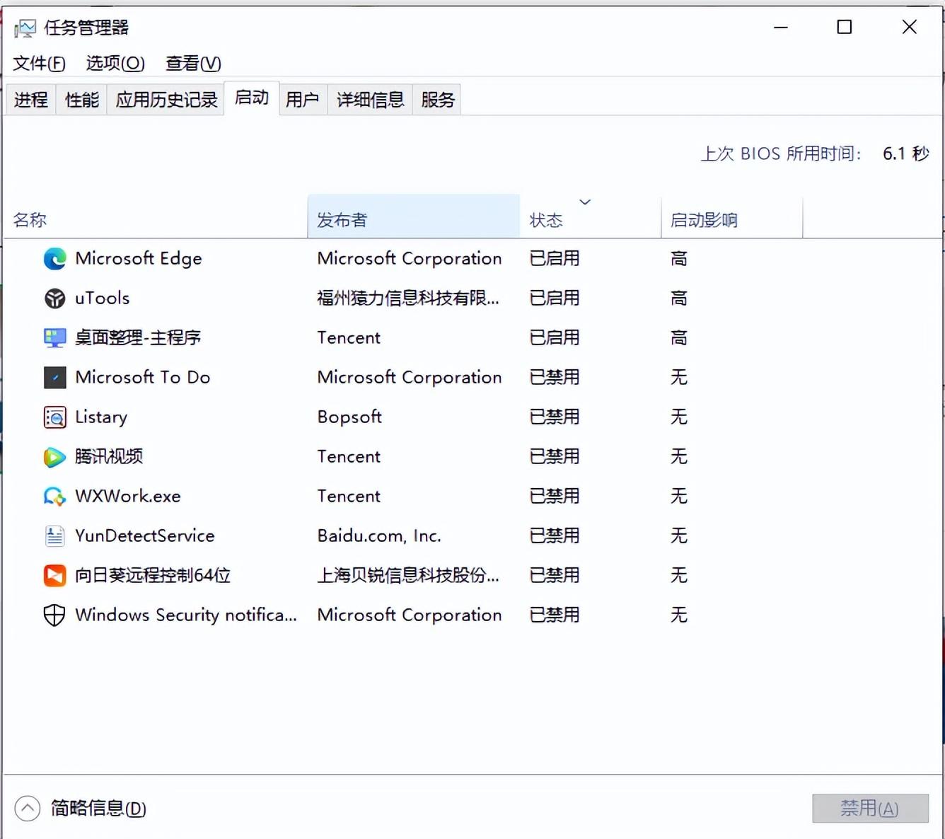 估计这个大家都知道,打开任务管理器切换到启动选项卡,就可以管理电脑开机启动程序了。