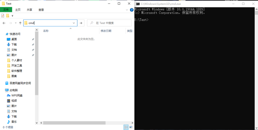 比如进入目录E:\Test ,然后直接输入cmd 可以E:\Test 目录的命令窗口