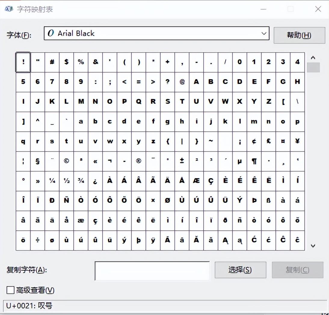 ©®这些符号怎么输入,运行窗口输入 charmap 就会打开字符选择的窗口。
