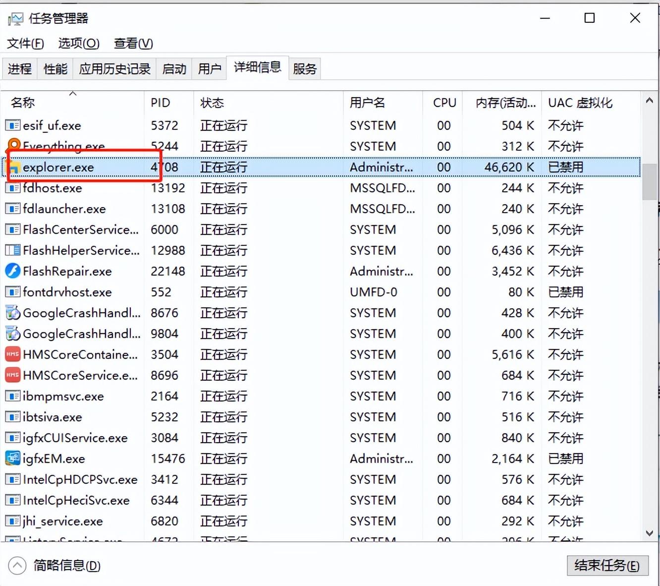 2、当你桌面找不到图标时,直接杀掉explorer.exe进程