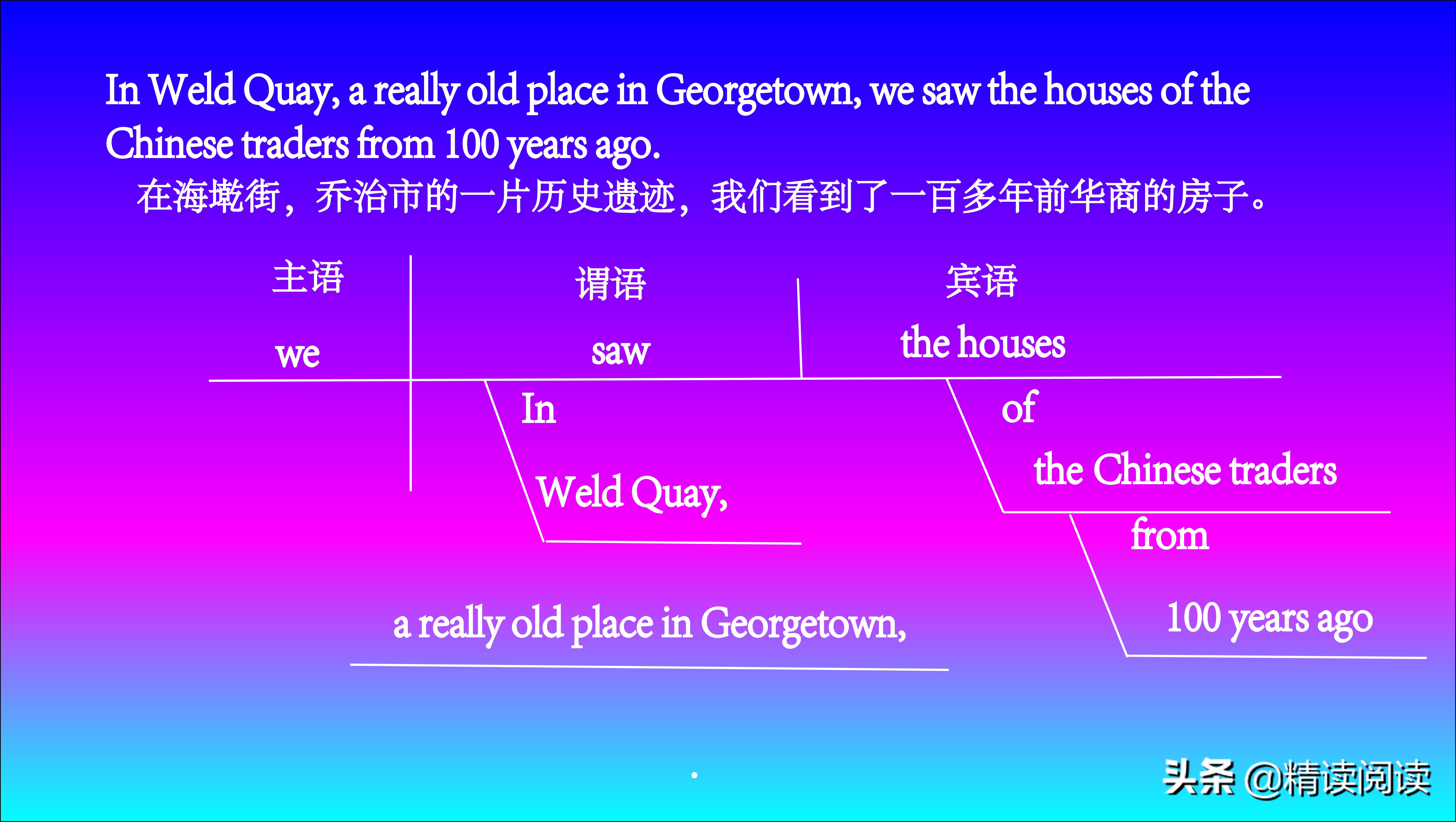 句法结构:本句只有主语,谓语,其余成分皆是状语。