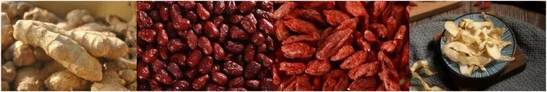 【原料】生姜、红枣、枸杞、玉竹(其用量比例为3:2:1:1)脾胃虚寒者、风寒感冒患者可将生姜去皮,一般人饮用可不去皮。