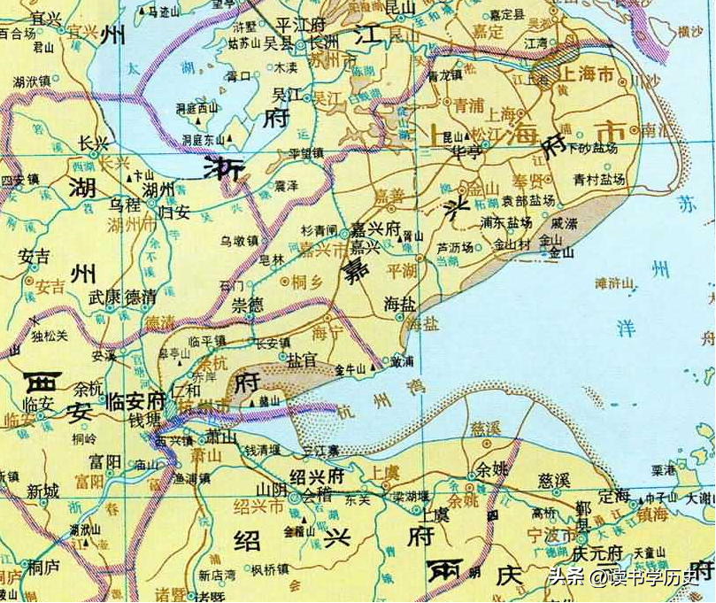 南宋时期,宋金对峙,属于南宋的势力范围,隶属于两浙西路的嘉兴府、临安府分别管辖,嘉兴府下设有嘉兴、华亭、海盐、崇德等县,府治设在嘉兴县;盐官县归属临安府辖领。