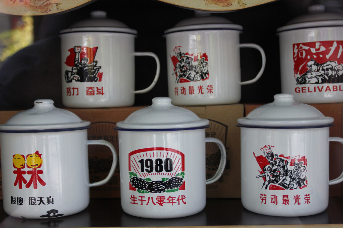最近在一家主打年代感的餐馆用餐时,发现餐厅里提供的喝水杯,是类似下图这样的,有点像金属杯,又有点像陶瓷杯,颇有几分特色。一问店主才知道,这是上个世纪6、70年代曾火爆一时的“搪瓷”杯。