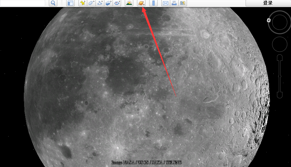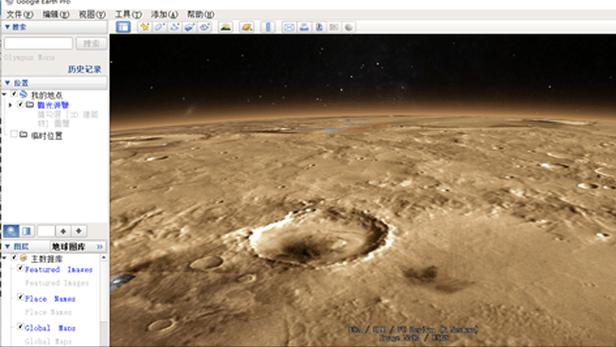 谷歌地图可不仅仅只能用来看我们的地球,还可以通过区域的选择来浏览月球、火星以及星空的影像。