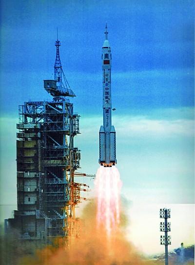 长征二号F运载火箭将神舟五号送上太空。