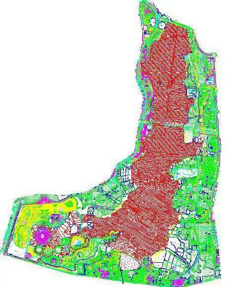 ▲ 龙子湖地形总图,中间红色部分是水下地形,周围的是水面周边的地形图