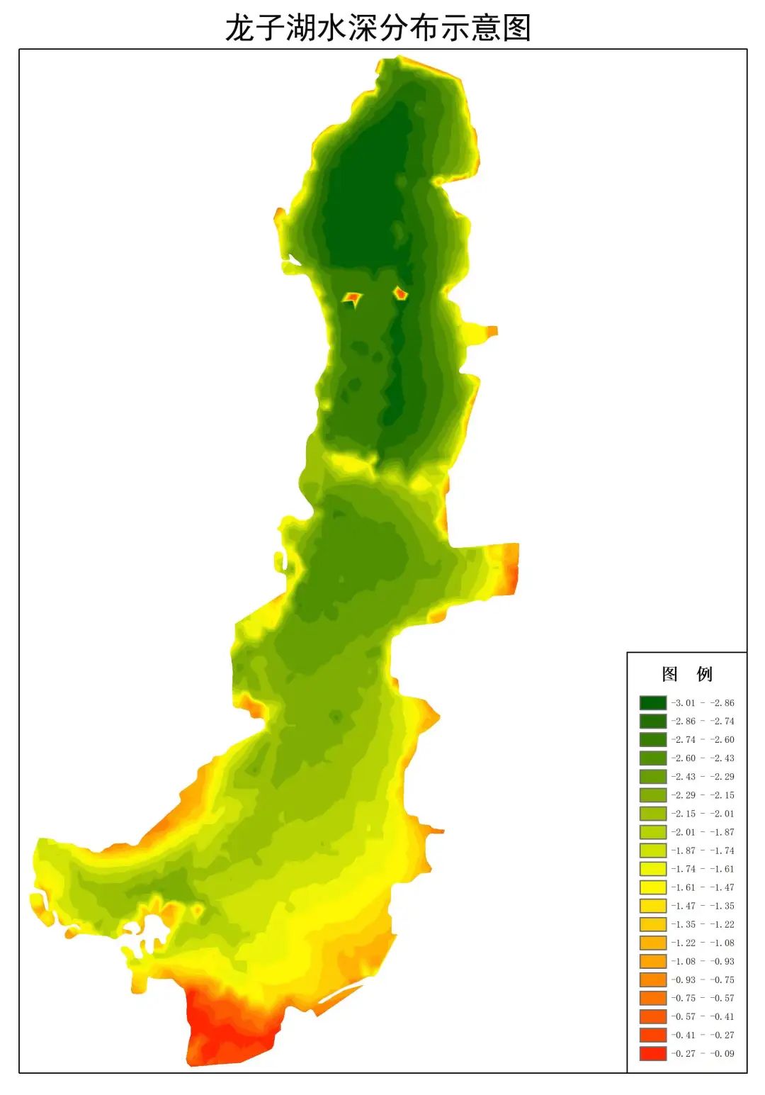 此次精确测量,不仅明确了龙子湖水下地形、各个点位的深度,相关部门也掌握了龙子湖水面情况,拥有了龙子湖的“身高”“腰围”等一系列数据,比如, 湖面南北长约8.5千米,东西宽约0.6~1.9千米,水域面积8.3平方千米。
