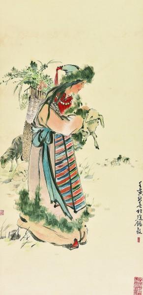 牧羊女原稿作者:刘松樵绣制:庄锦云