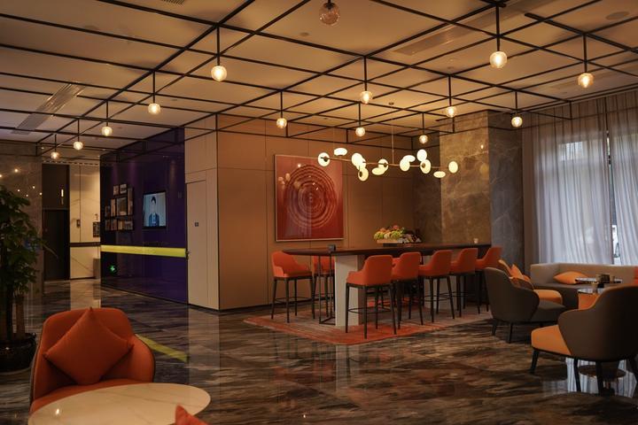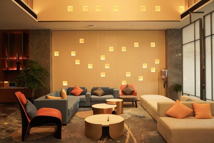 酒店前台很大气,超高吊顶,吊灯很有特色,休息区域也很大。