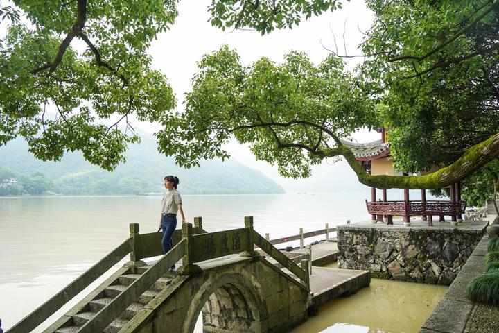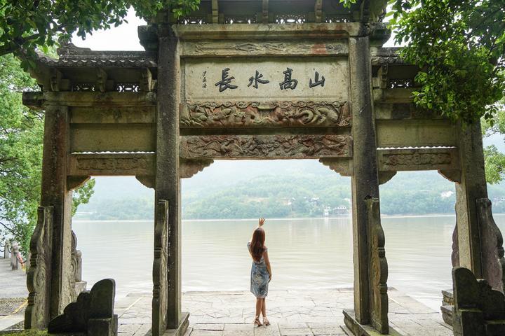 乘船游富春江,进入富春山麓,感受山水的美好,可经过富春江上风光最美丽的一段七里泷,直到见到粉墙黛瓦,飞檐翘角,一片古朴的建筑便是来到了严子陵钓台。