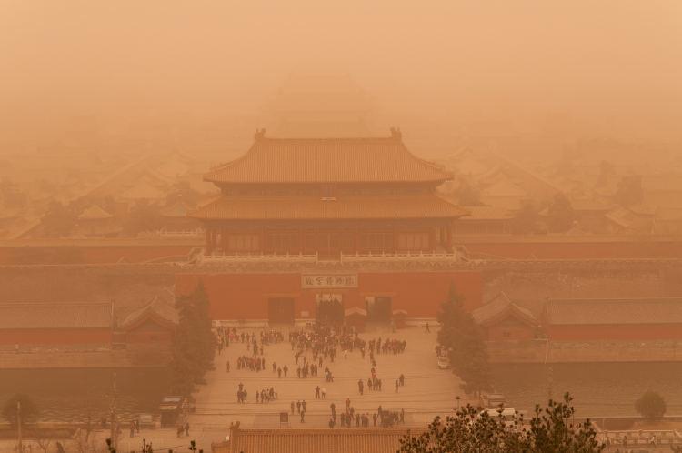 漫天黄沙笼罩下的故宫:西北地区沙化问题得不到根治,沙尘暴总会卷土重来。 / 视觉中国