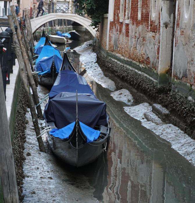 搁浅在淤泥中的贡多拉船。 / 安莎社