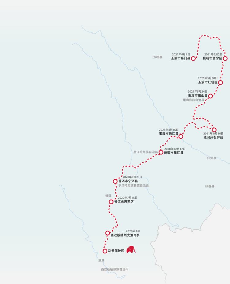2021年5月26日,15头亚洲象从云南西双版纳州出发,一路向北迁徙。经过一年时间、近500公里的长途跋涉,进入玉溪峨山县境内,距离省城昆明不到100公里。