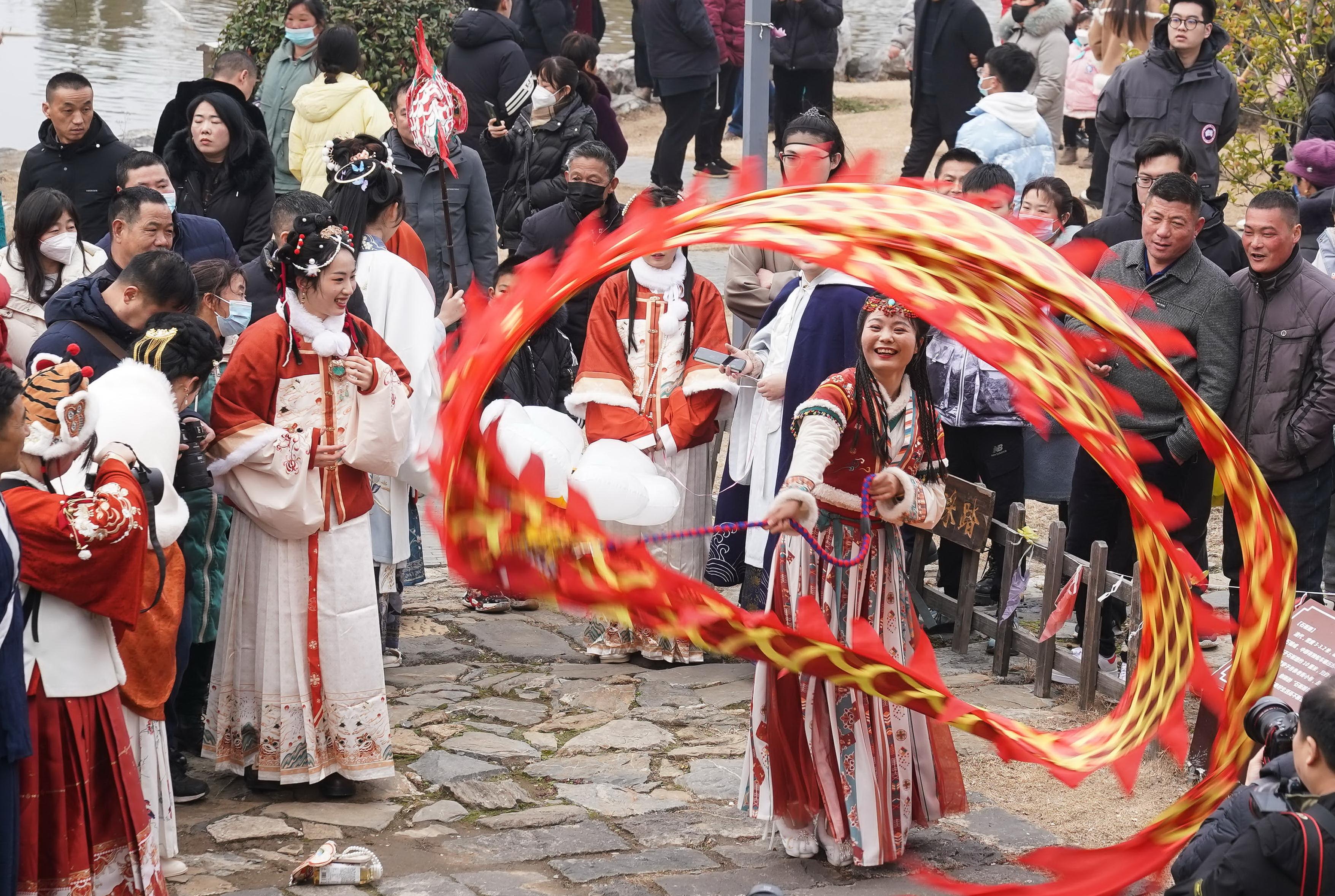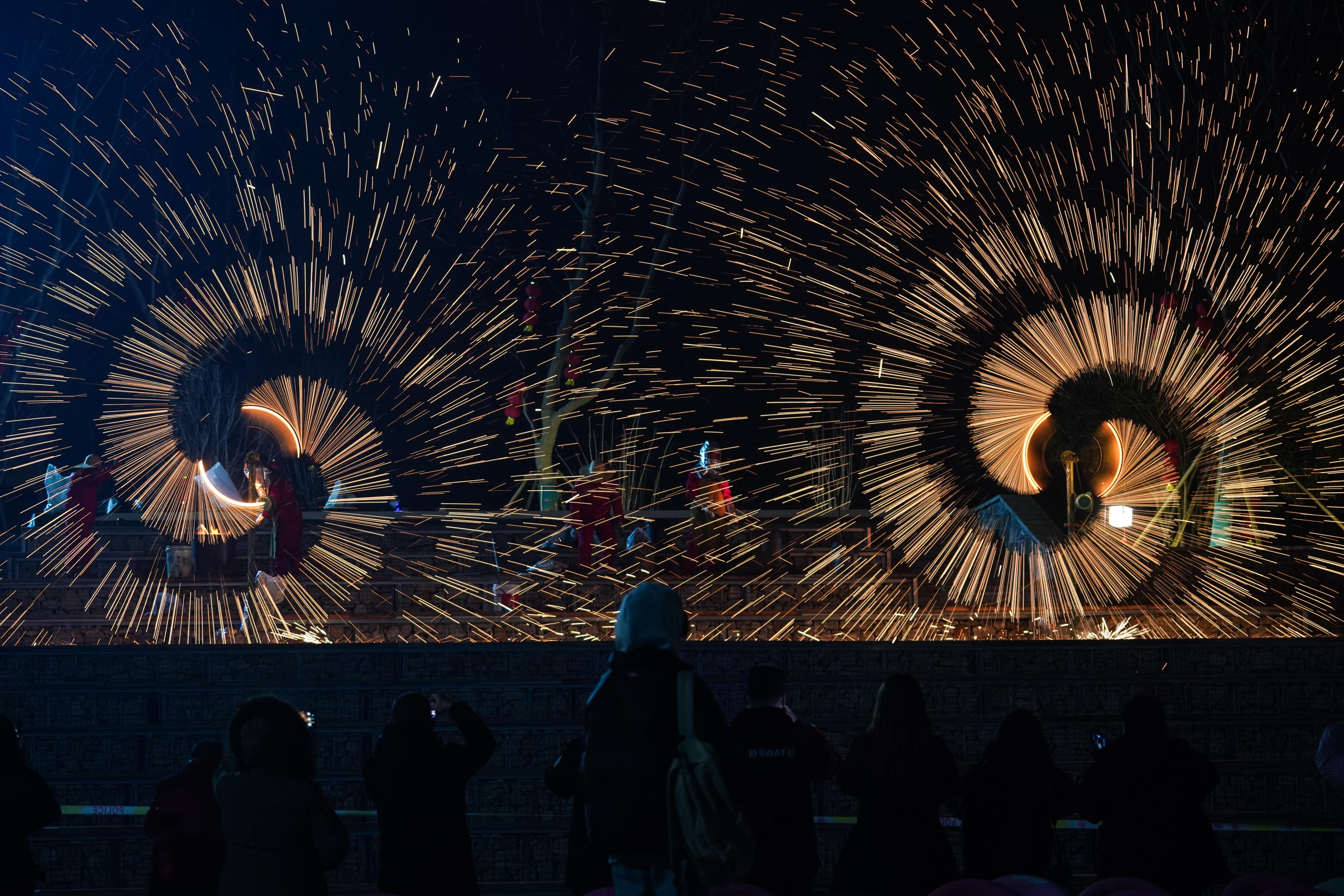 春节期间,江苏省淮安市盱眙县在第一山历史文化街区举办兔灯展、“老街味道”传统小吃嘉年华、舞龙、打铁花等丰富多彩的文旅活动,让市民和游客在浓浓的年味中欢度佳节。