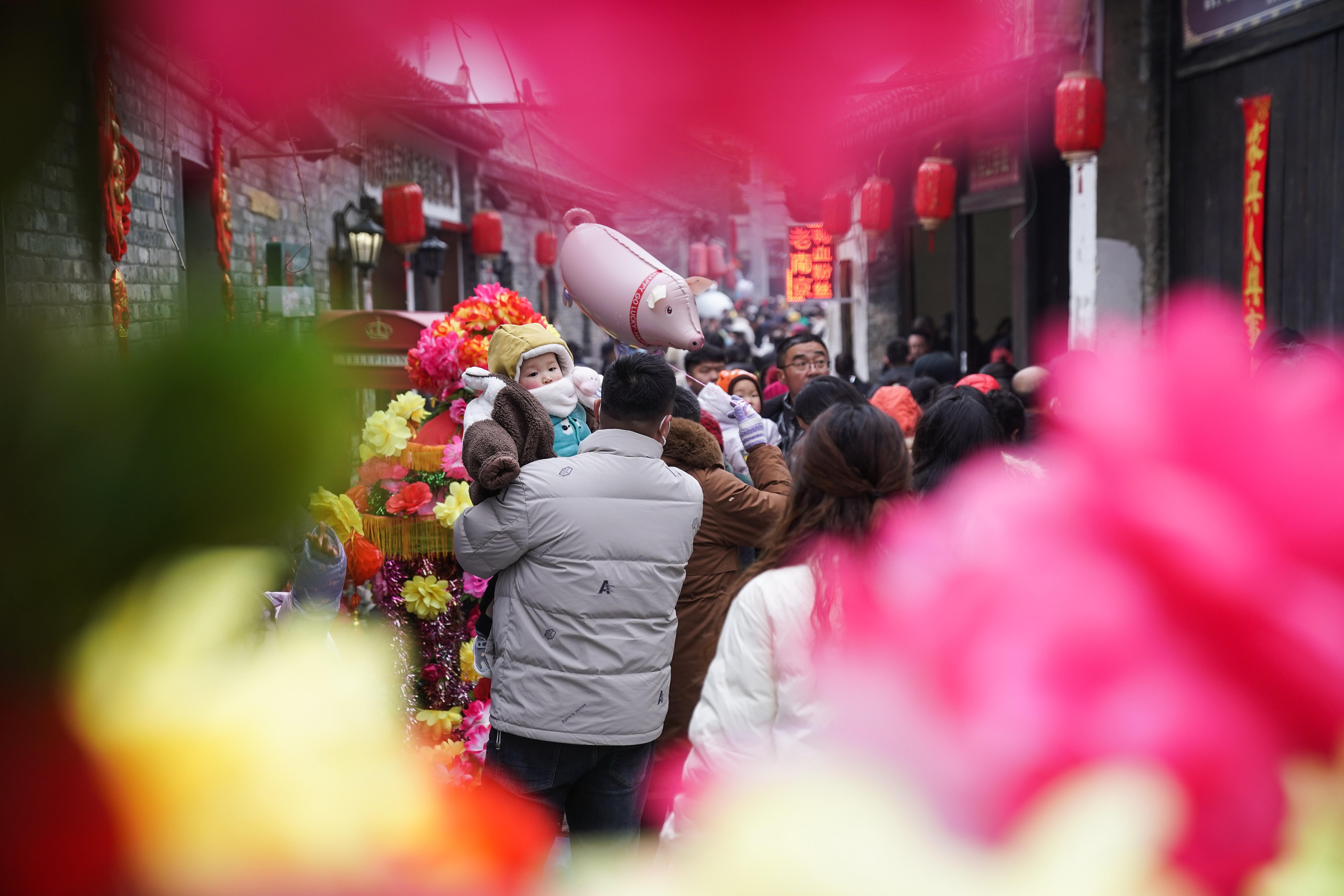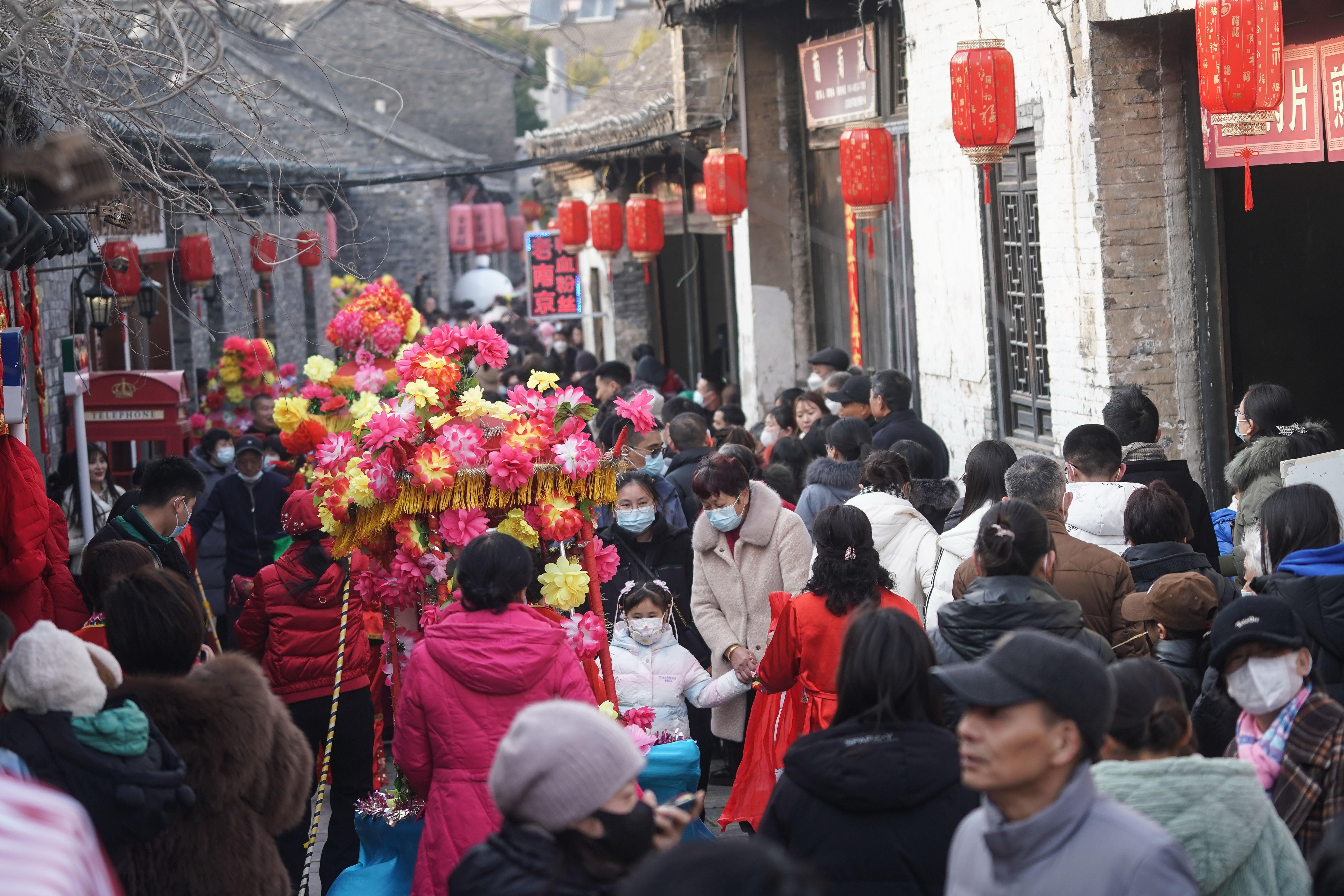 1月23日,市民和游客在盱眙第一山历史文化街区游玩。 新华社记者 季春鹏 摄