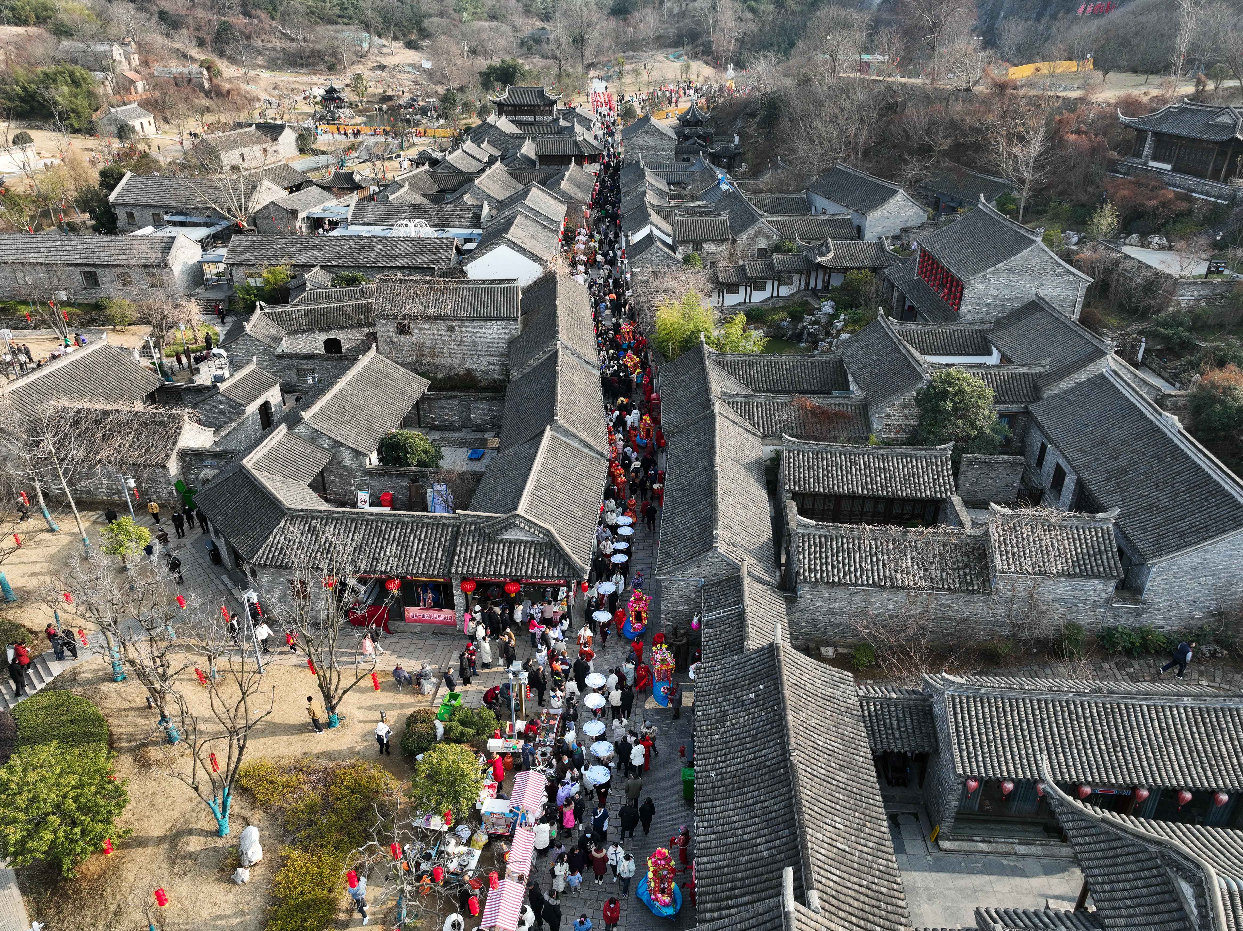 1月23日,市民和游客在盱眙第一山历史文化街区游玩(无人机照片)。 新华社记者 季春鹏 摄