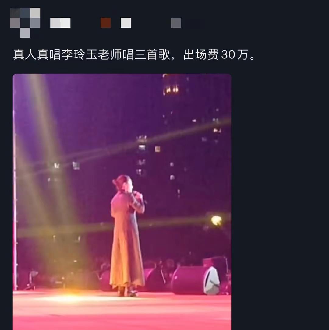 2020年有消息称李玲玉唱三首歌报价30万。