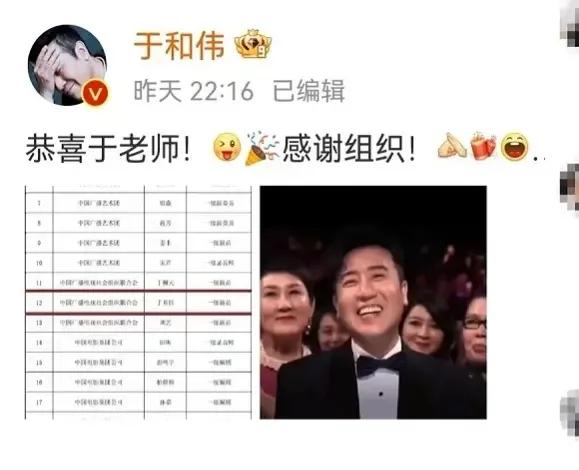 由此可见,被评为国家一级演员的于和伟有多么的开心。