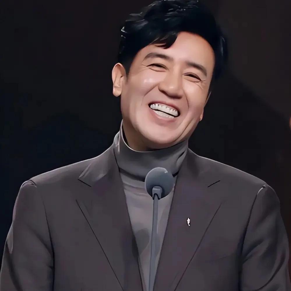 第二张图,则选择一张于和伟大笑的照片,激动之情溢于言表。