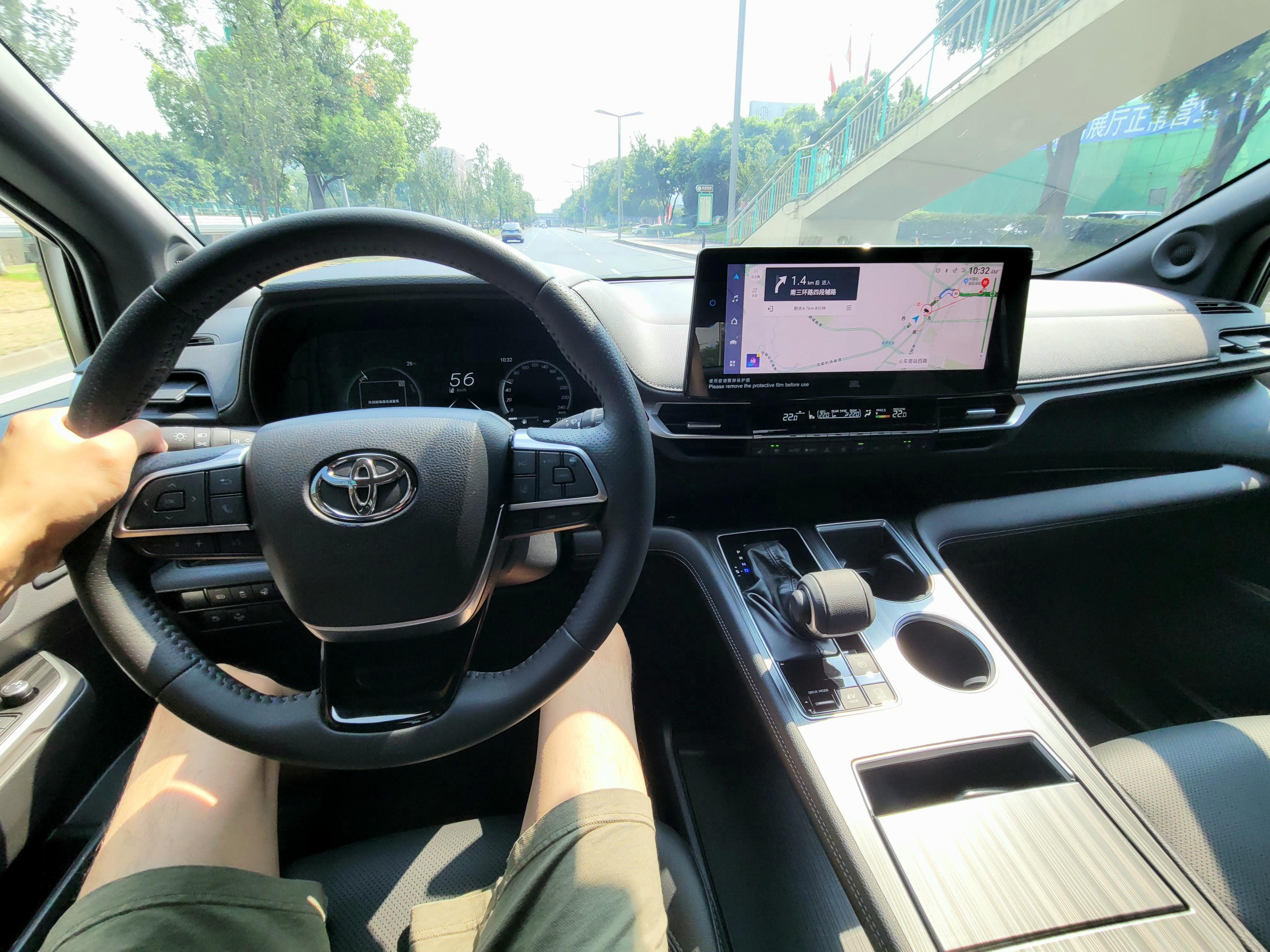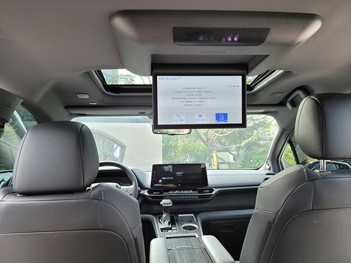 关于内饰和车厢这块,我就不谈设计美感了,一切从舒适性和实用性说起。但是有一点需要指出,赛那SIENNA的整个中控台设计,确实有家用车的调性,比如科技感方面,包括全液晶仪表屏、中控触屏、流媒体后视镜、HUD抬头显示以及第二排11.6英寸娱乐影音屏在内,这款丰田车“玩屏”还是挺溜的。