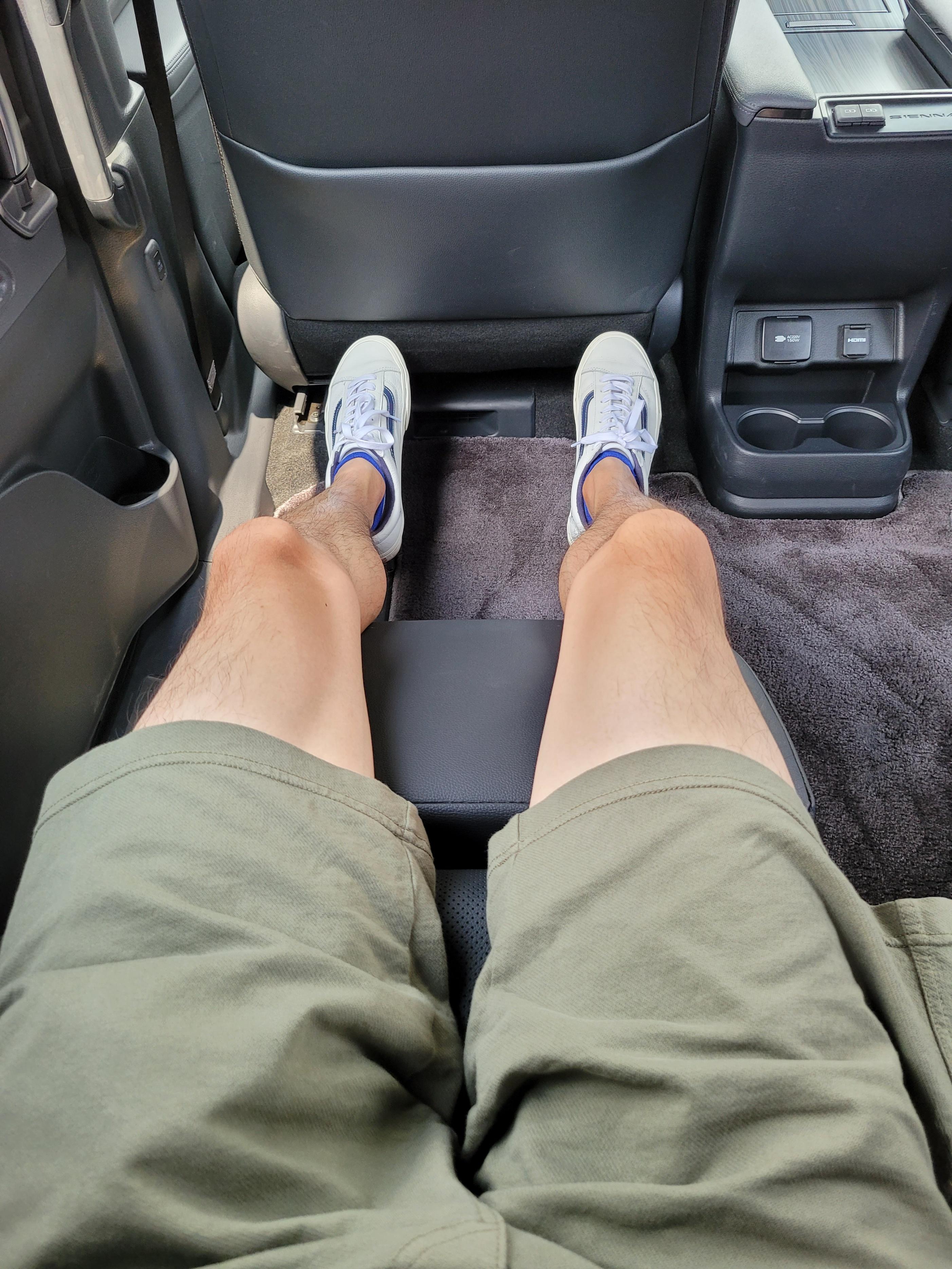 最后,我们来说下第三排乘坐舒适性,这也是很多人关心的,毕竟第二排是很享受的,那么第三排坐着会憋屈吗?个人身高是183cm,在第二排调到腿部空间还有两拳多的位置,我坐在第三排,腿部空间接近一拳,而头部空间有两三指。如果是短途出行,或者身高不是太高,赛那SIENNA的第三排空间是足够了,特别是靠背角度还可以调,可以尽可能“躺下去”。