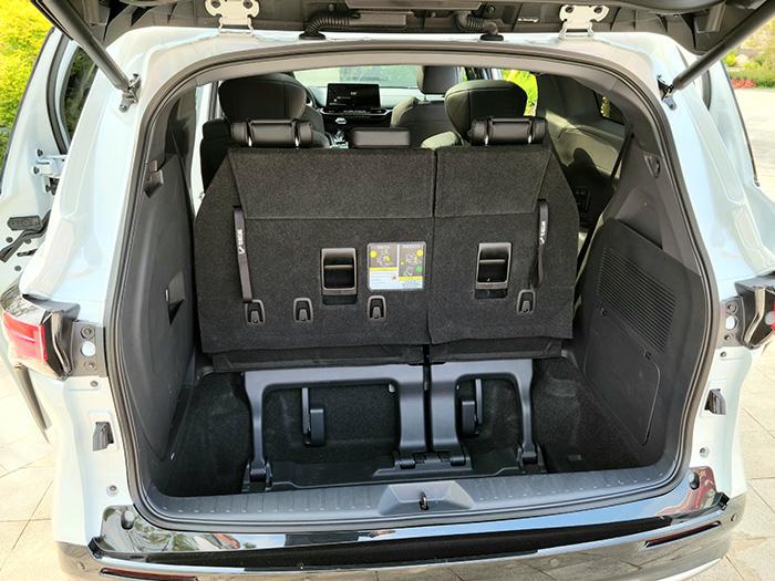 刚提到空间实用性,对于MPV来说,乘坐空间是一方面,而储物空间也是重要。根据官方数据,在第三排座椅没有放倒的状态下,后备厢常规容积为525L,如果放倒第三排座椅(隐藏于地板中),后备厢容积可达2112L。等于说,如果需要搬个什么大件儿,赛那SIENNA也不再话下。而日常7座出行,短途的行李是足够放了,因为后备厢做了下陷的设计,空间利用率不低。