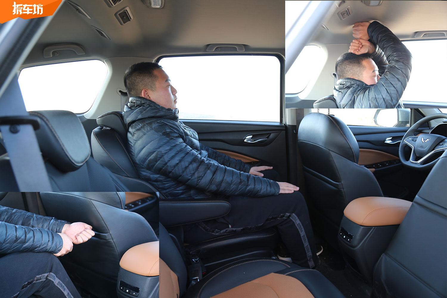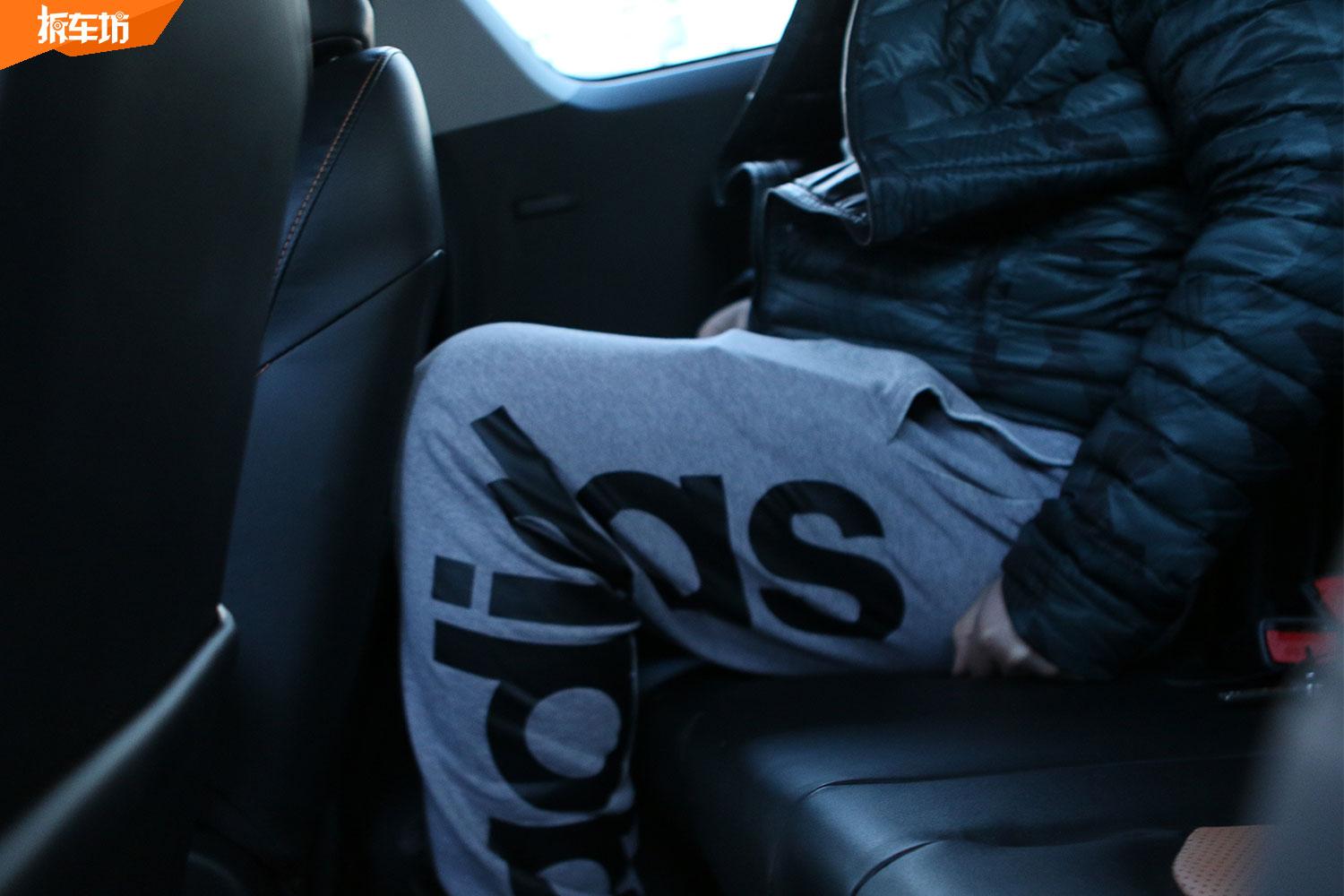 当体验者来到第三排,腿部已经顶到前排座椅靠背,看来第三排只适合短途乘坐。