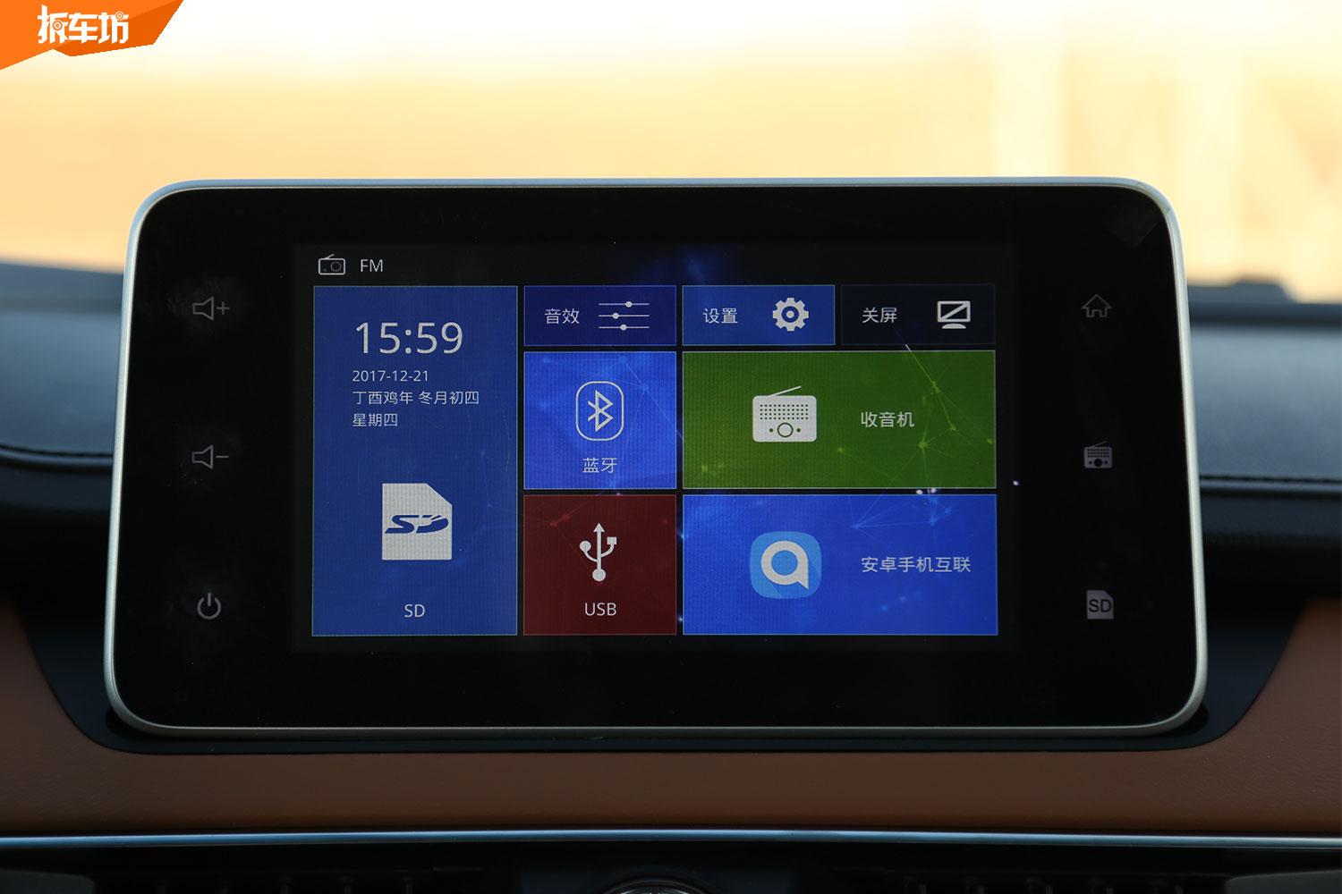 中控台上带有一块八英寸显示屏幕,采用悬浮式设计,界面简单易懂,配色非常清新,提供了蓝牙、USB连接、手机互联等功能需要吐槽的是,手机互联功能只支持安卓手机,难道厂家认为开五菱神车的不用苹果手机吗?屏幕使用起来非常流畅,但是分辨率较低。