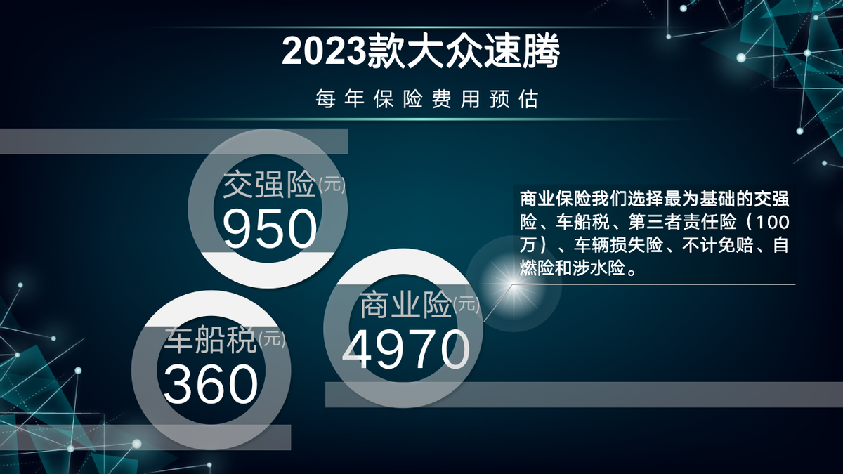 综合了保险、保养以及燃油费用,我们得到新款速腾每年的开销大概在19835元,每个月的平均花费为1653元,整体的花费并不算太便宜,主要原因归结于油价日益上涨,以及保养的花费相对较高。