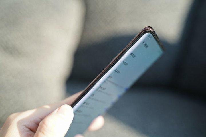 当然开箱仅仅是带入「旗舰级」的仪式感,我们还是要回到手机本质上去。绕不开的就是弯曲度过于夸张的曲面瀑布屏。