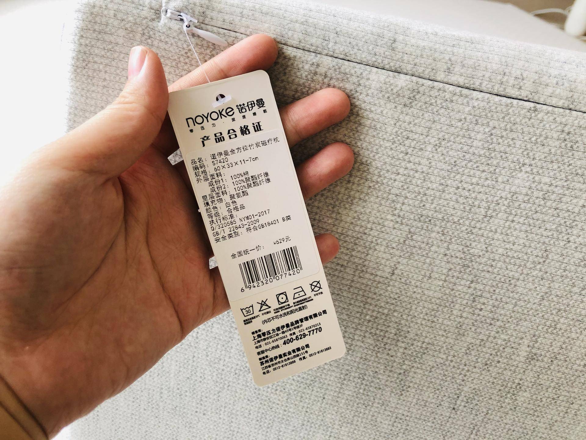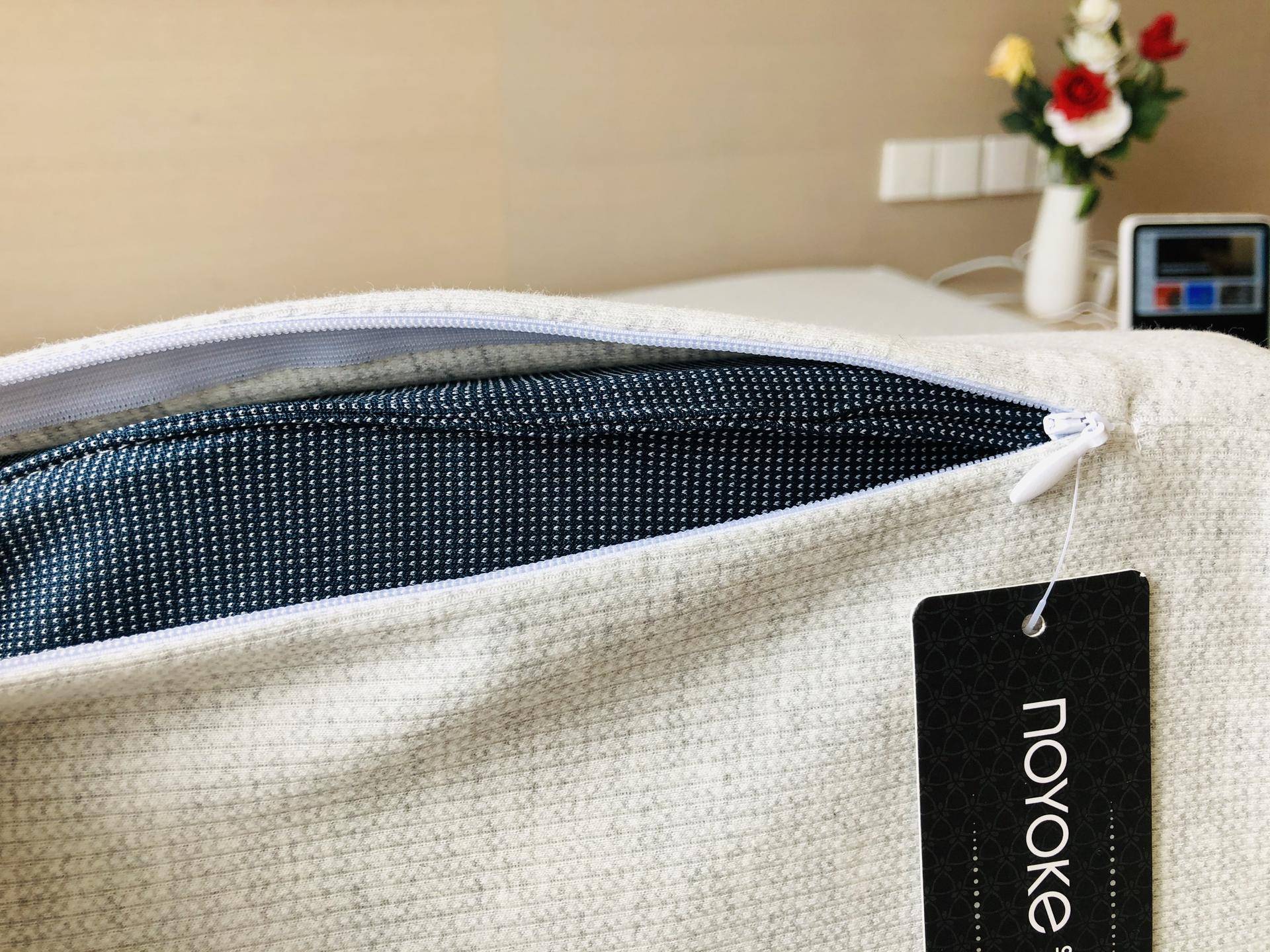 枕头的枕套方便拆卸水洗,拉链小巧、圆润,不会造成刮伤,拉链的吊牌上有蝶形枕的相关参数、材质、颜色等相关介绍,蝶形枕品名又叫诺伊曼全方位竹炭磁疗枕,方便用户对枕头有进一步的了解。