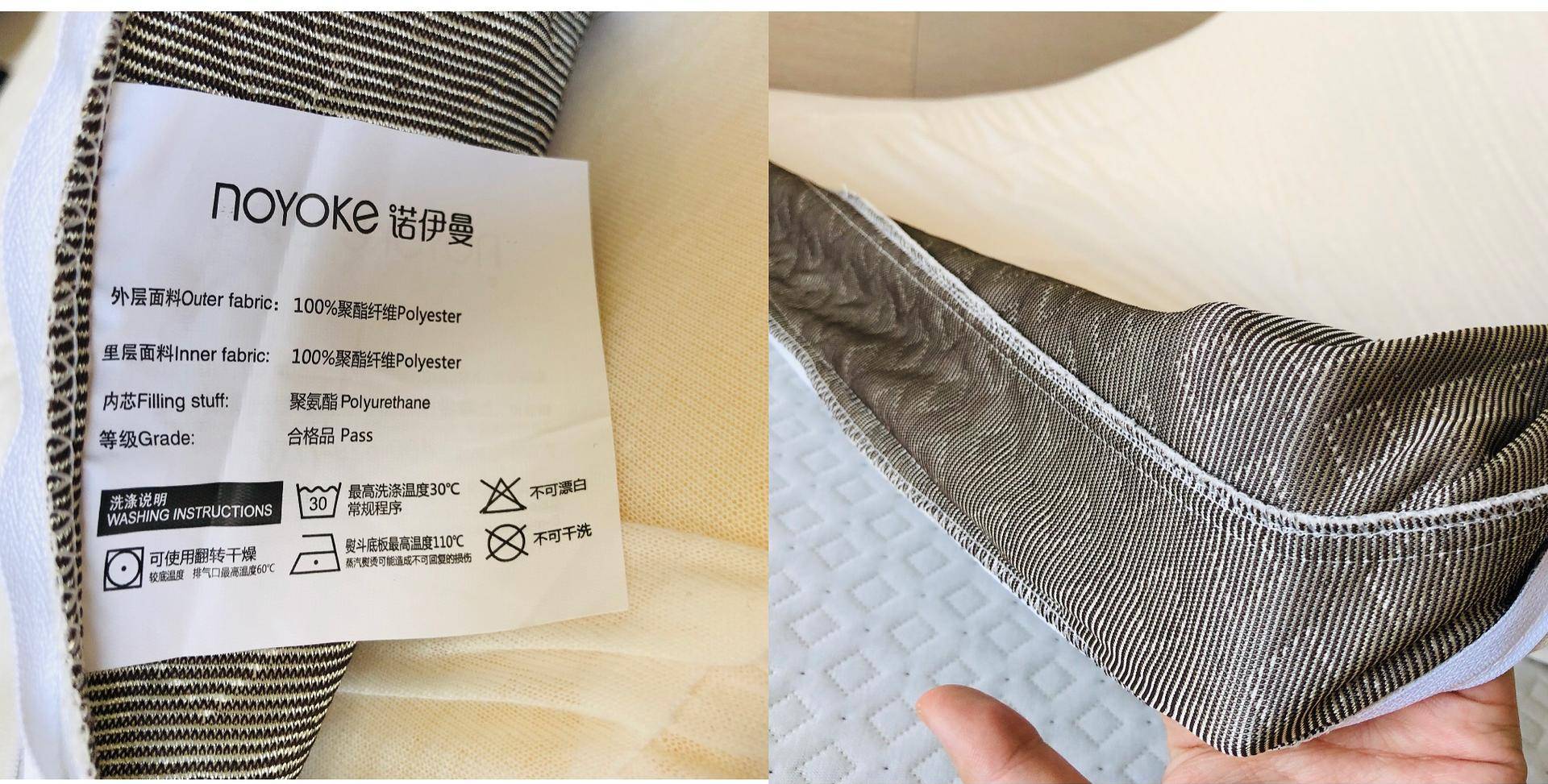 床垫套内侧有面料材质介绍,外层、内侧都是选用100%聚酯纤维,也有相应的洗涤、熨烫注意事项,床垫套内测的走线均匀、结实有力,做工很精致。