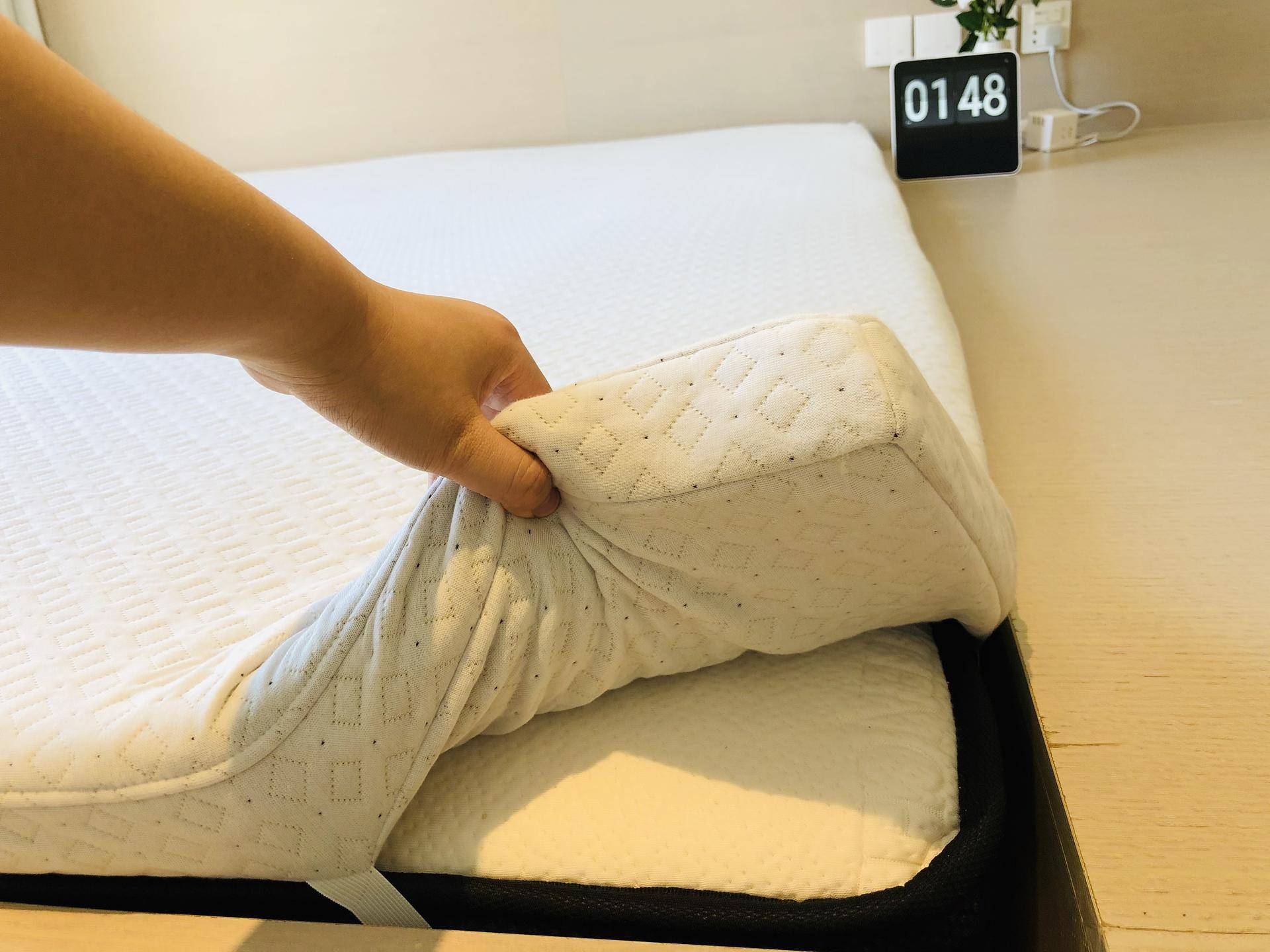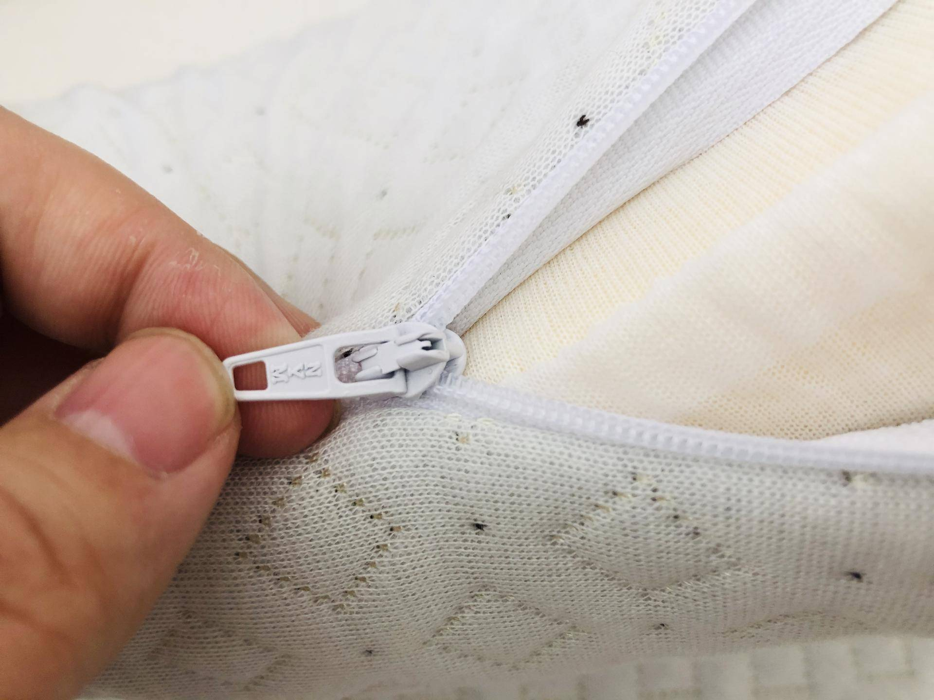 床垫的床垫套支持可拆卸水洗,边角处设计有隐藏拉链,拉链很顺滑不易卡,方便拆装。床垫的内芯具有防螨防霉变抑菌的作用,以前我的背部经常起红点,跟我以往使用的旧床垫材质、不透气都有很大的关系,这款床垫特别适合皮肤易过敏的人群。