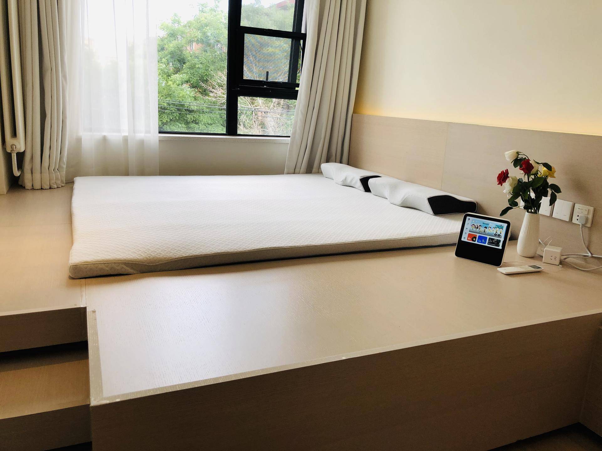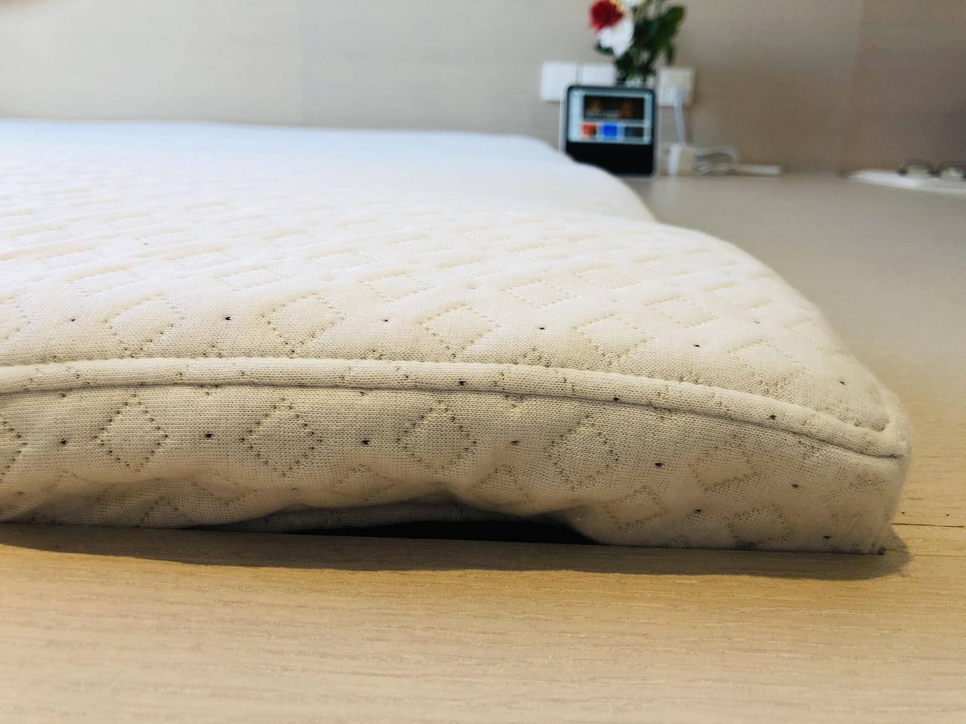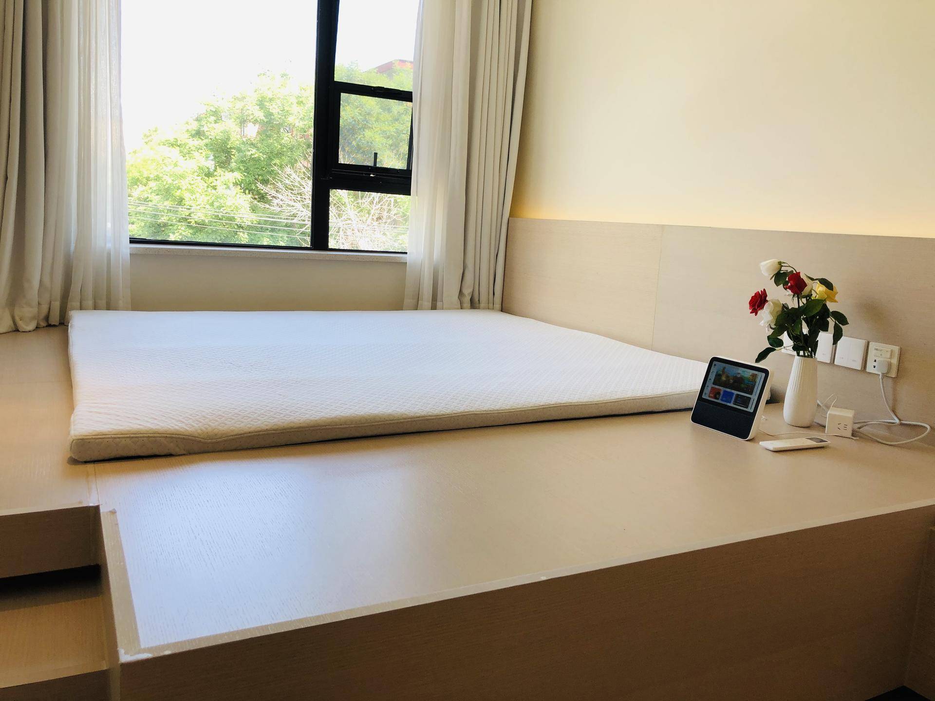平常睡的榻榻米,在原有的厚床垫基础上,铺上这款1.8×2m的诺伊曼记忆棉床垫大小刚刚好,5cm的厚度跟我银行卡的宽度差不多。