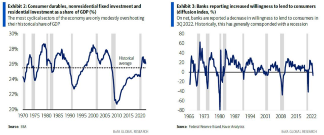 目前,这些行业仅略微有过剩迹象,然而,银行已经开始变得不太愿意向消费者提供贷款,因此,或许经济衰退的预期已被充分传达,但我们会发现它更多表现为“自我抑制”而不是“自我暗示”。